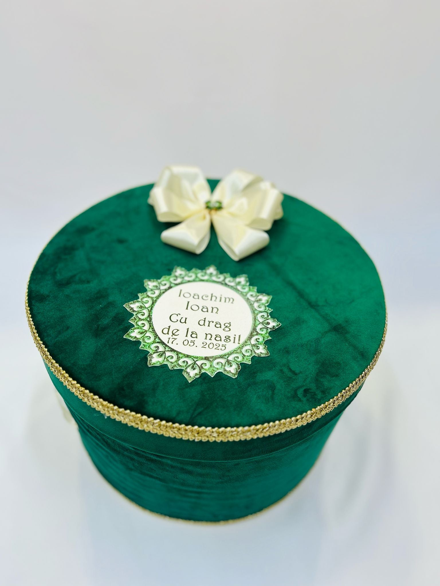 Cutie de botez realizată manual, din materiale rezistente, ideală pentru păstrarea trusoului și a amintirilor din ziua botezului. Decorată cu elemente rafinate – flori, țiul, panglici, broderii sau personaje tematice – poate fi personalizată pentru a se potrivi perfect cu stilul evenimentului.
