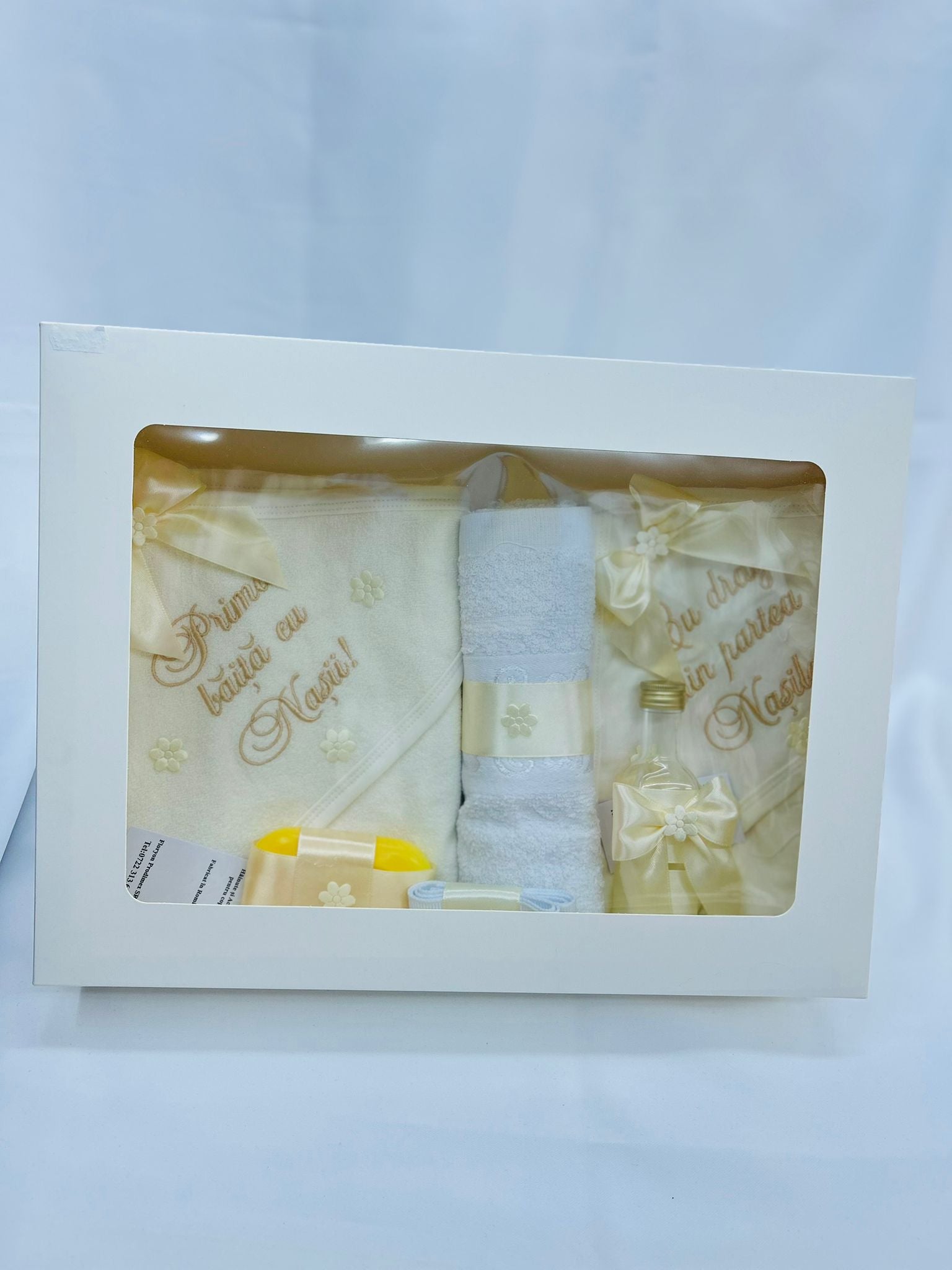 Acest trusou de botez, creat special pentru micuța ta, îmbină eleganța tradiției cu delicatețea detaliilor fine. Confecționat din materiale moi și prietenoase cu pielea sensibilă a bebelușului, setul conține tot ce este necesar pentru desfășurarea ceremoniei într-un mod impecabil.